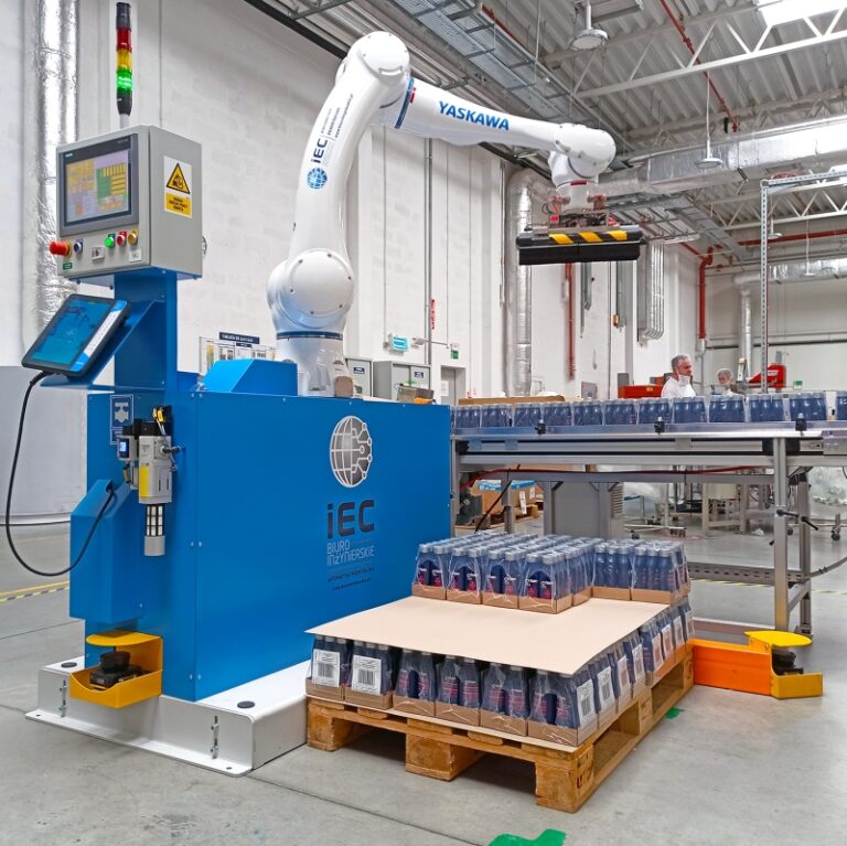 Z robotem H30 firmy Yaskawa z udźwigiem maksymalnym 30kg co w rzeczywistości daje 26-27kg na karton lub grupę kartonów.